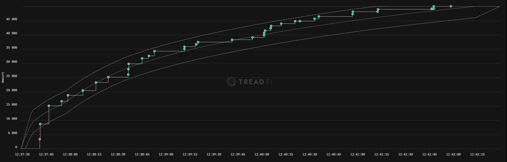 The Aggressive Taker strategy is designed for traders who prioritize speed and execution urgency over cost efficiency. It follows a VWAP (Volume Weighted Average Price) trajectory but with an aggressive, front-loaded execution profile, driven by an alpha tilt setting of 1. This results in faster fills, with a higher proportion of taker orders to ensure rapid execution.